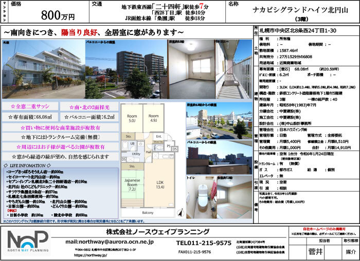 | アクセス | 地下鉄東西線「二十四軒」駅 徒歩7分 地下鉄東西線「西28丁目」駅 徒歩10分 JR函館本線「桑園」駅 徒歩18分 |