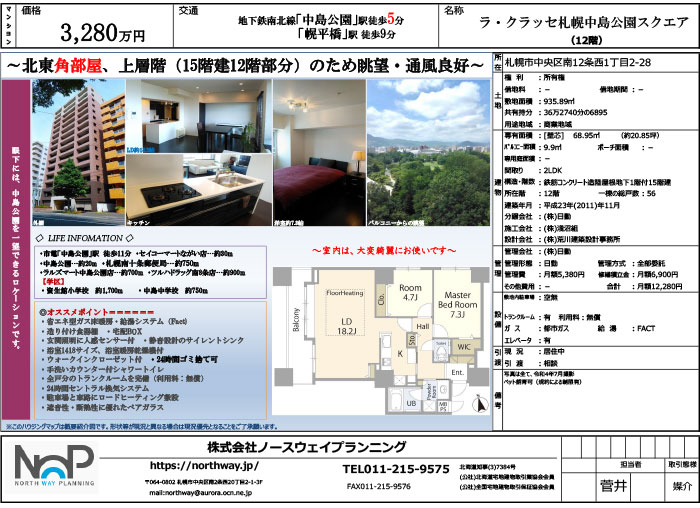 TOP > 売却実績 > ラ・クラッセ札幌中島公園スクエアの事例