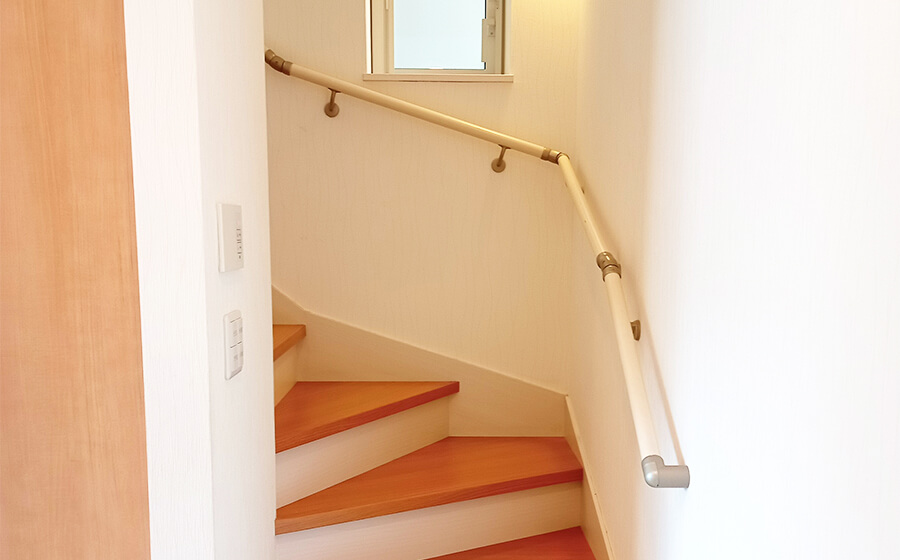暗くなりがちな階段にも窓があるのは、嬉しいポイント!手すりも付いてます。