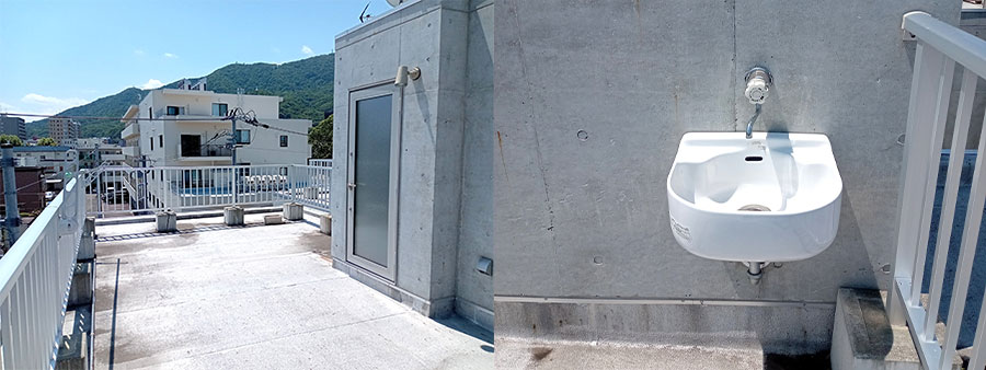 夏にはバーベキューや緑を育てて空中庭園も楽しめます♪(ぜひご家族の憩いの場としてご活用ください。嬉しいスロップシンク付)